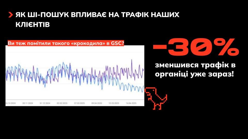 Майже третина користувачів, які раніше переходили на сайти з пошуку, тепер отримує відповіді безпосередньо в AI-відповідях і не клікає на посилання. Середнє падіння органічного трафіку склало близько 30%. Особливо відчутно це за інформаційними запитами.