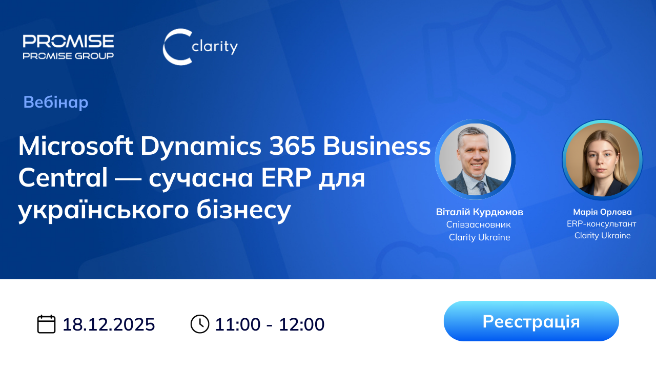 Запрошуємо на професійний вебінар, де експерти Clarity Ukraine розкажуть, як ефективно впроваджувати ERP-рішення від Microsoft для малого та середнього бізнесу.