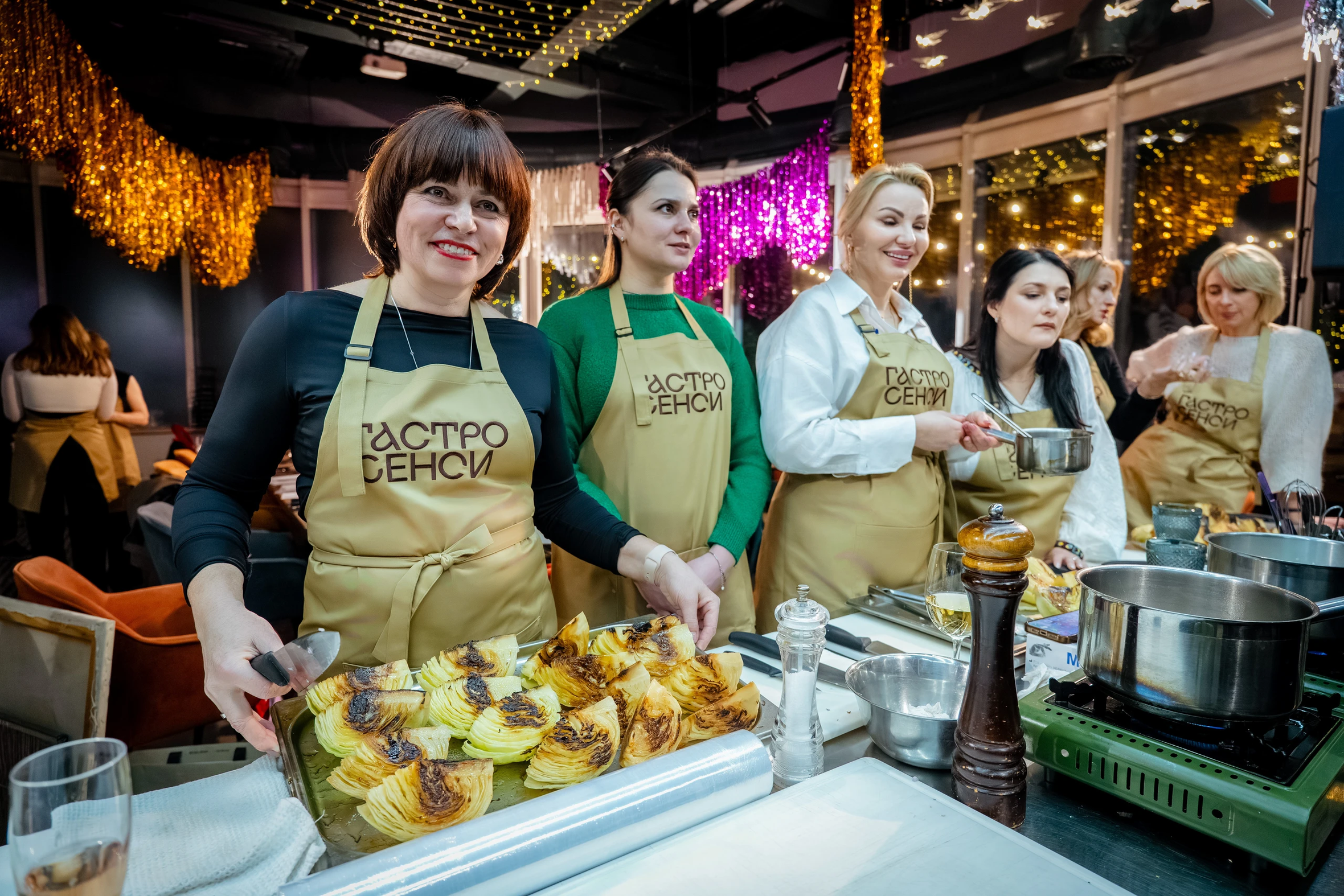 Креативна агенція Vandog створила лінійку мерчу для «Гастросенсів»: чашку, худі та твіллі з айдентикою на основі українських візуальних традицій — глини, дерева життя та вишивки білим по білому. До системи також увійшли елементи кінцугі як метафора переосмислення досвіду, а не його приховування.