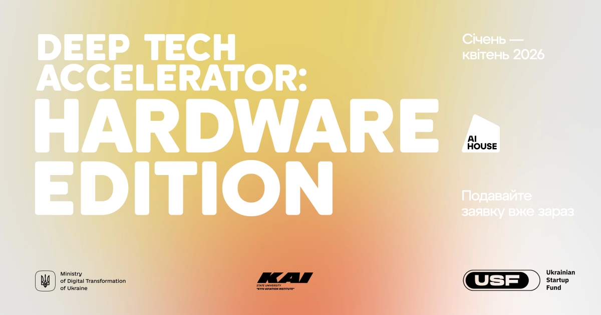AI HOUSE оголошує старт реєстрацій до Deep Tech Accelerator: Hardware Edition — non-equity програми для команд, які поєднують інженерне мислення, штучний інтелект і бажання створювати реальні продукти.