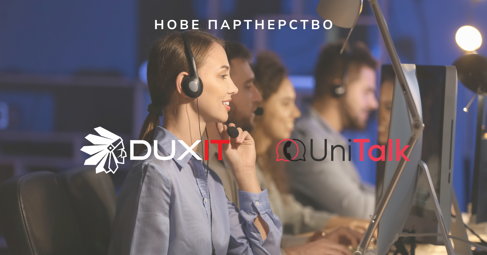 Компанія DUXIT, провайдер комплексного ІТ-аутсорсингу та технічної підтримки бізнесу, оголошує про початок співпраці з UniTalk – міжнародною платформою інтелектуальних рішень для голосових та цифрових комунікацій. Партнерство спрямоване на те, щоб надати компаніям єдине, кероване та масштабоване рішення для управління інфраструктурою та комунікаціями.