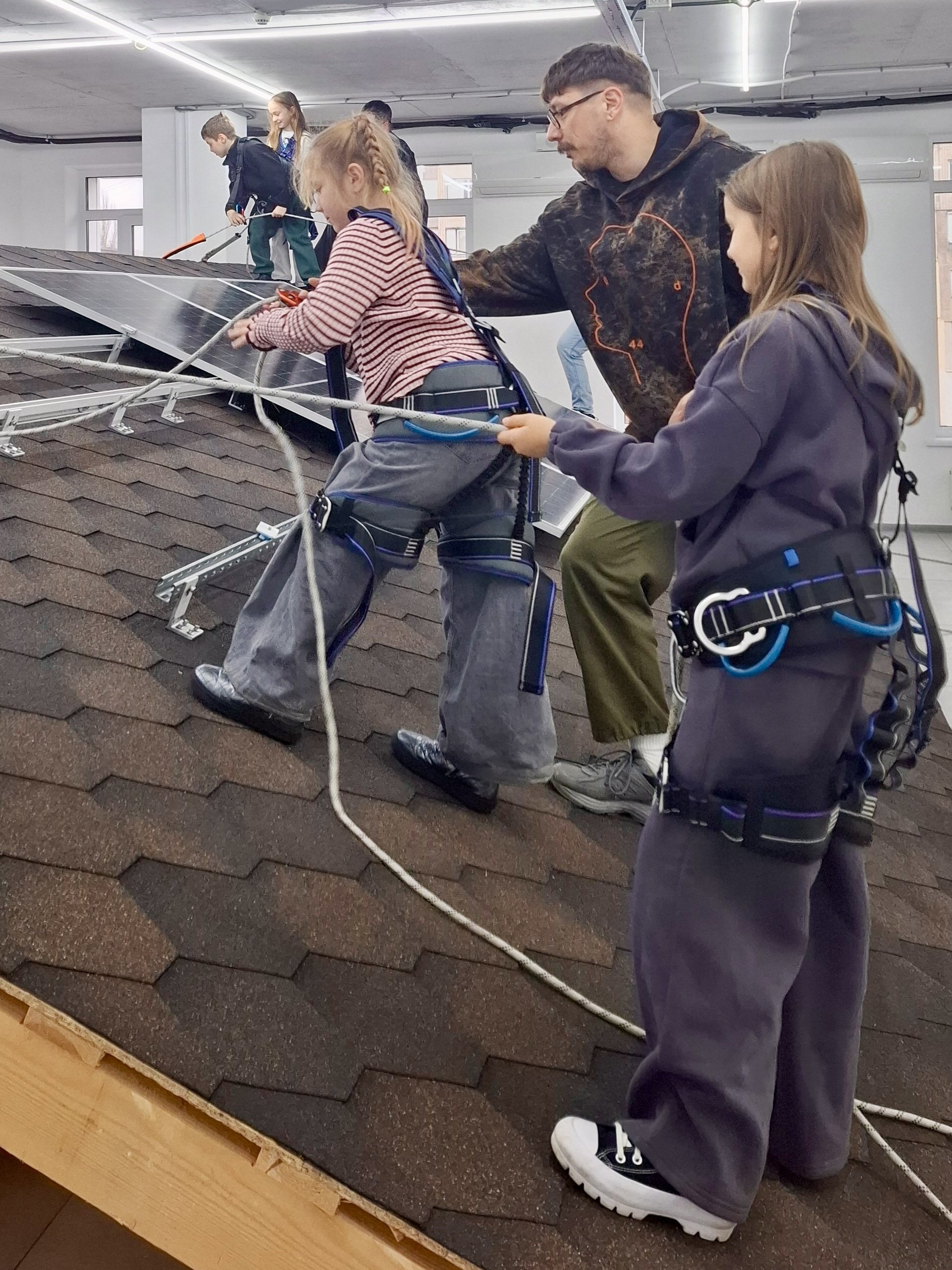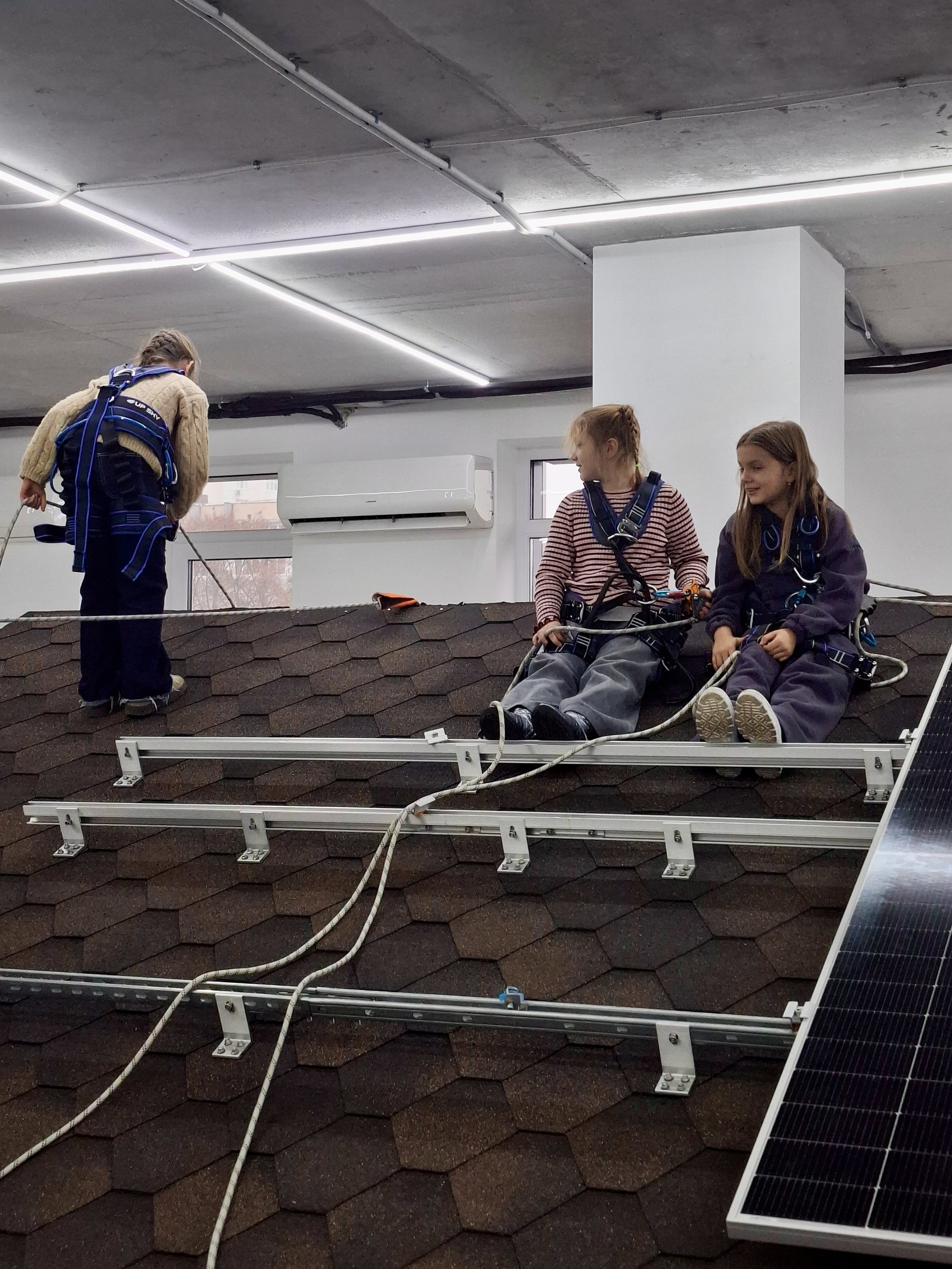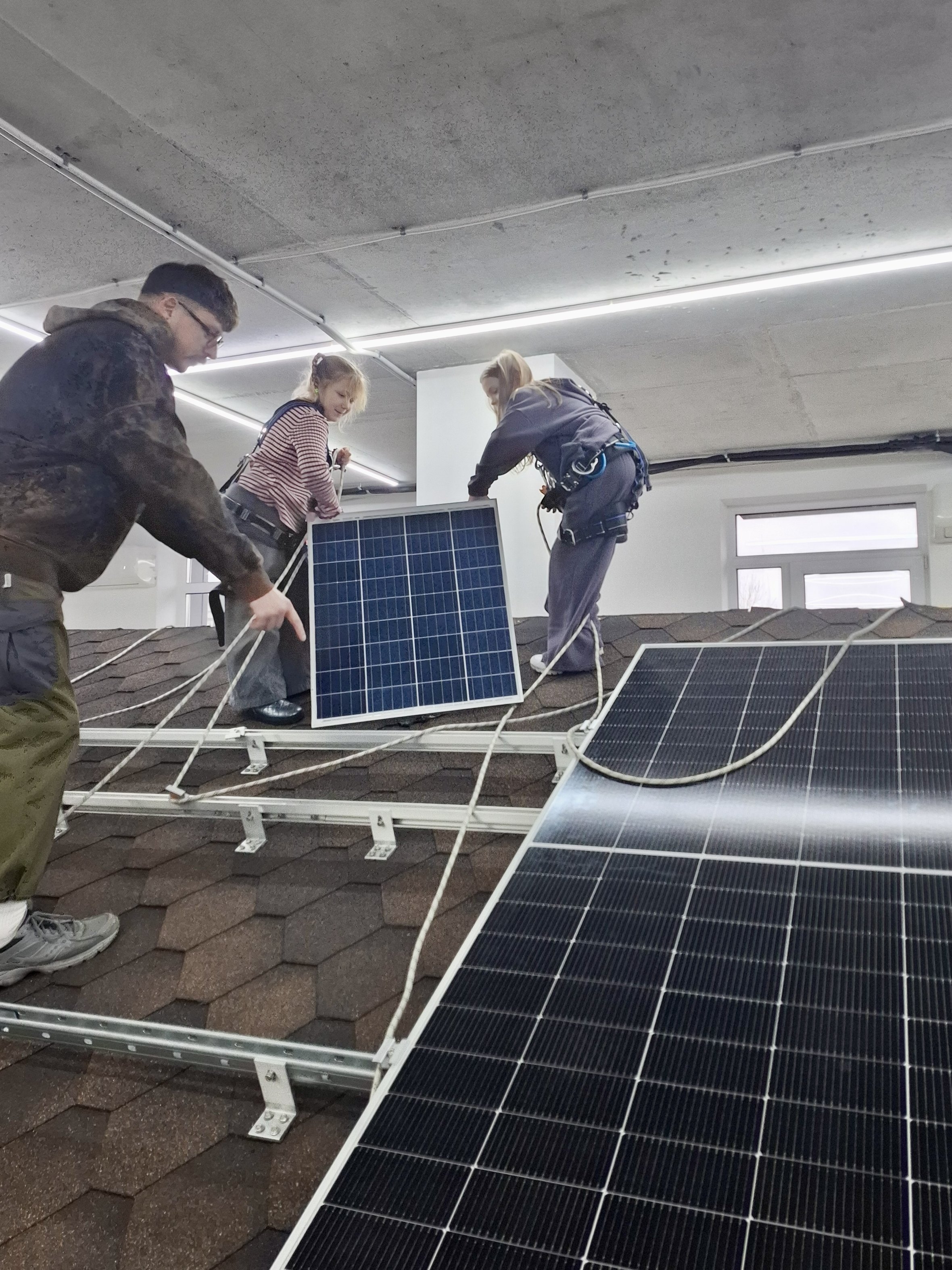 Для закріплення матеріалу ініціатори заходу Atmosfera Kids провели коротку вікторину та тематичні ігри, які допомогли школярам краще запам’ятати нову інформацію. Практична частина стала ключовим елементом заняття: діти встановили сонячну панель на імітований дах, спробували роботу з інструментами та на кілька хвилин відчули себе частиною інженерної команди.