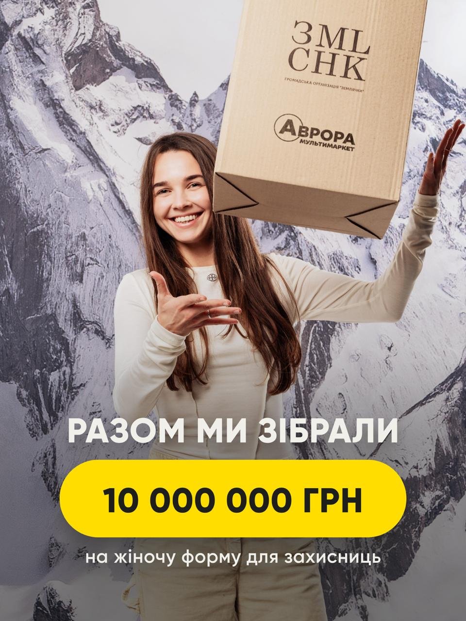 Мережа мультимаркетів «Аврора» та громадська організація «Землячки» підбили підсумки спільного благодійного проєкту «Моє Рідне Різдво», спрямованого на підтримку жінок у війську. У межах кампанії було зібрано 10 000 000 гривень, які вже передані на реалізацію проєкту з пошиття зимової жіночої військової форми для захисниць Сил оборони України.