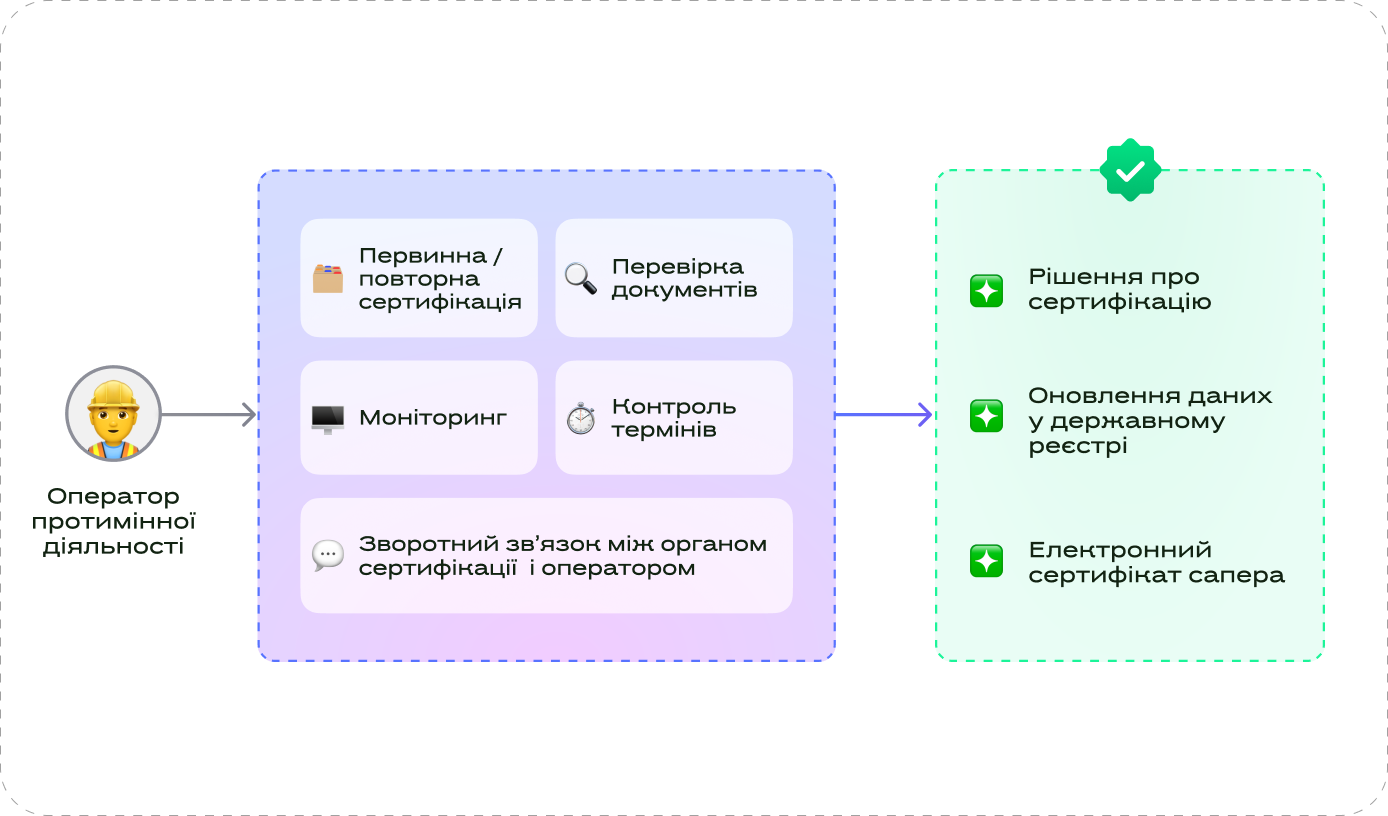 Сервіс онлайн-сертифікації показує, як технології можуть прискорювати критично важливі процеси. Адже більше сертифікованих операторів — це більше розмінованих територій і вищий рівень безпеки в Україні.