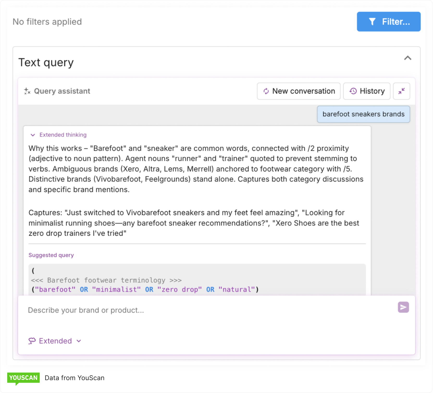 ШІ-помічник для написання пошукових запитів від YouScan перетворює створення запитів із складного завдання «лише для експертів» на швидкий, керований та ітеративний процес.
