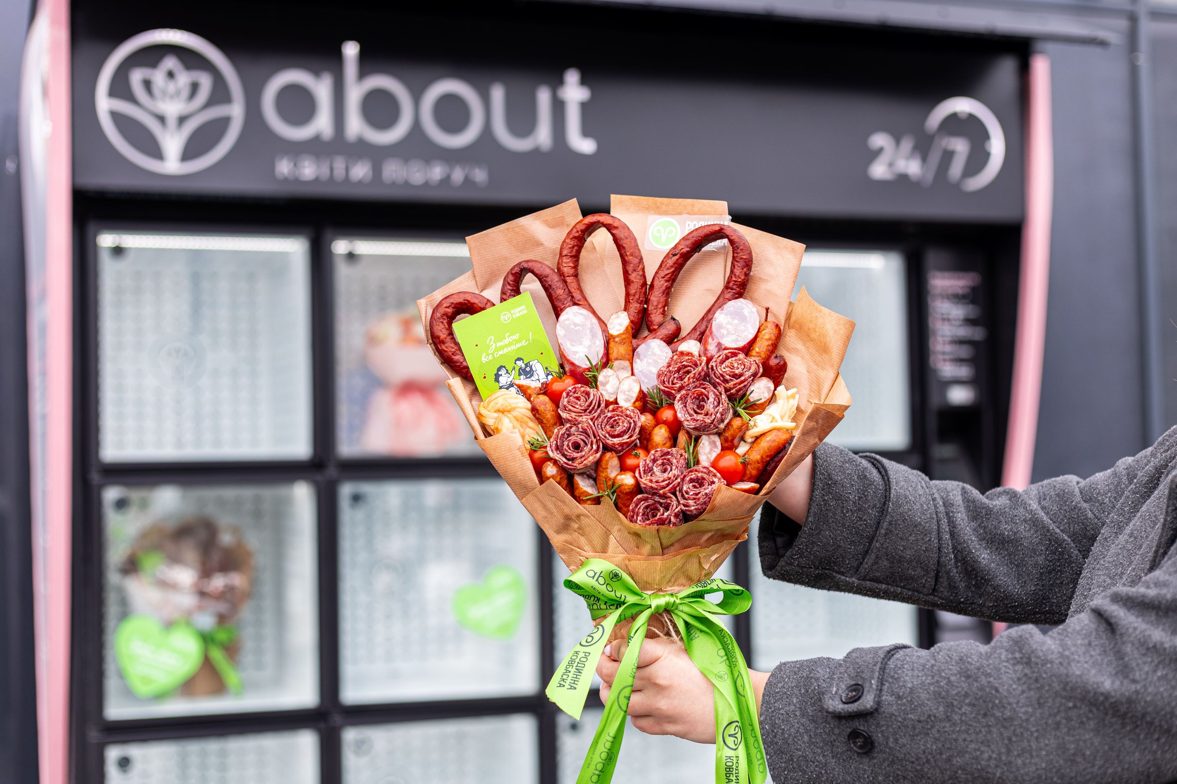 Родинна ковбаска з у колаборації з мережею флороматів Aboutflowers до Дня Валентина розробила і запустила не типовий подарунок – їстівний букет з ковбасок. Таким чином бренд вирішив нагадати: любов – це не лише романтичні жести раз на рік, а щоденна турбота.