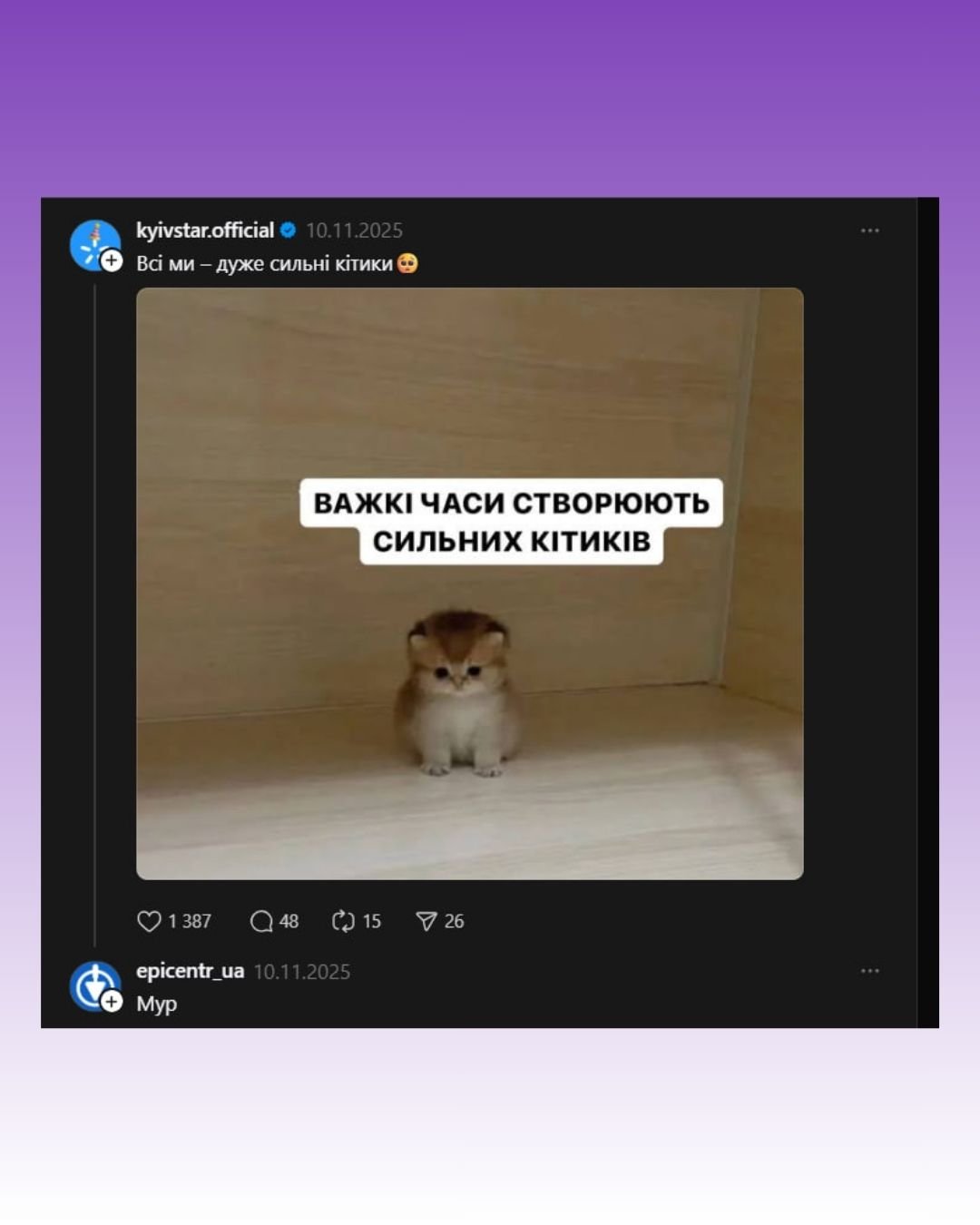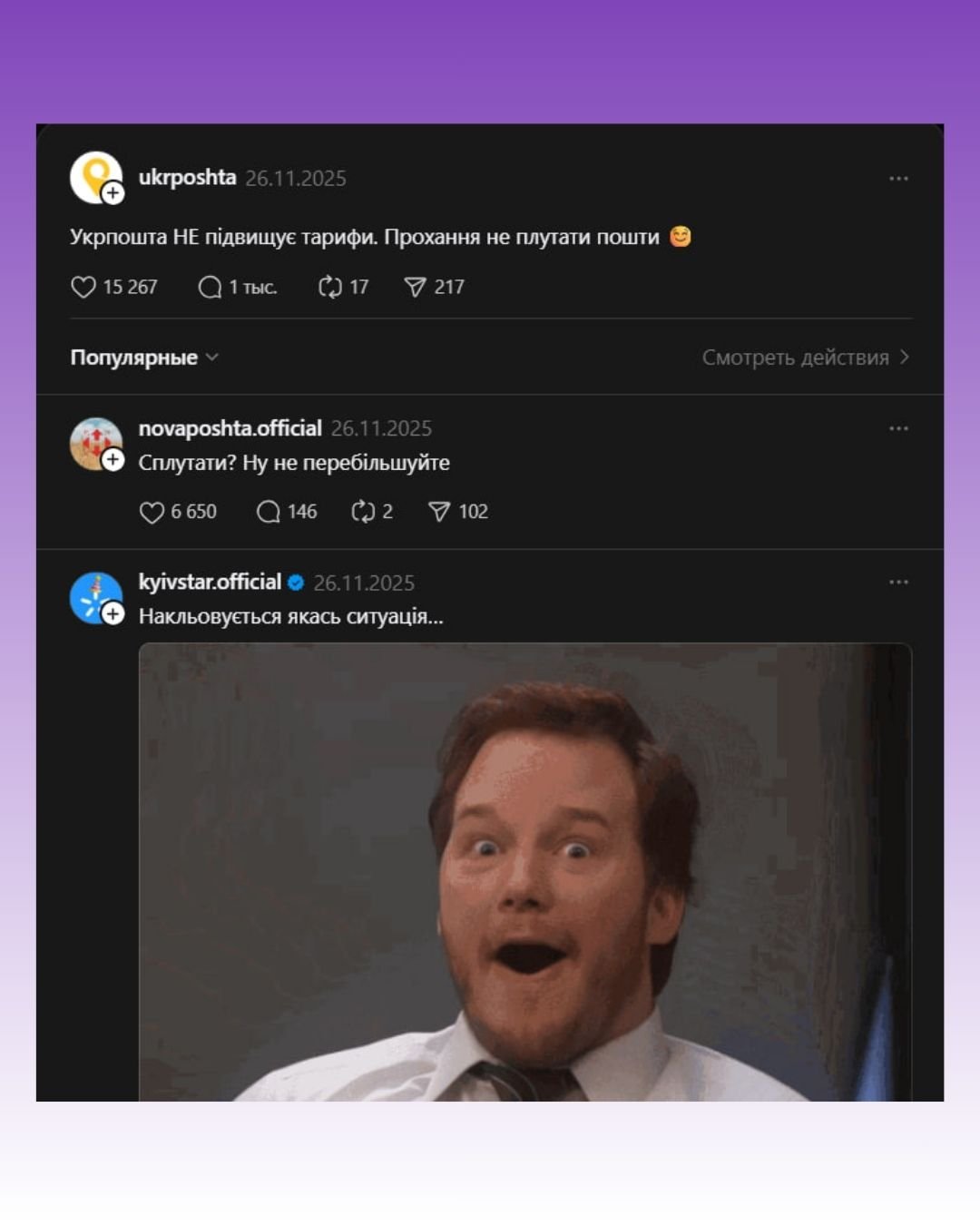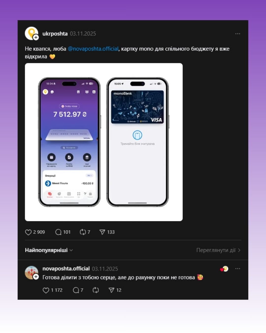 У Threads компанії жартують, іронізують, реагують на меми, підколюють конкурентів у коментарях і не бояться посміятися над власними промахами. Саме це й підкуповує. Коли бренд говорить твоєю мовою, розуміє контекст і не намагається виглядати ідеальним, з’являється довіра. А ще — бажання підтримати, поділитися, повернутися. Неформальний стиль також стає способом виділитися.