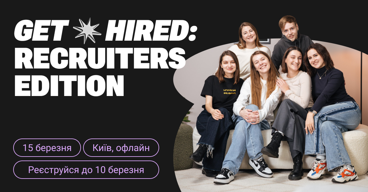 Група продуктових IT-компаній Universe Group відкриває набір на Get Hired: Recruiters Edition — одноденний офлайн-інтенсив для починаючих рекрутерів із невеликим досвідом, які хочуть прокачати практичні навички, отримати професійний фідбек і можливість працевлаштування. Захід відбудеться 15 березня у Києві. Подати заявку можна до 10 березня.