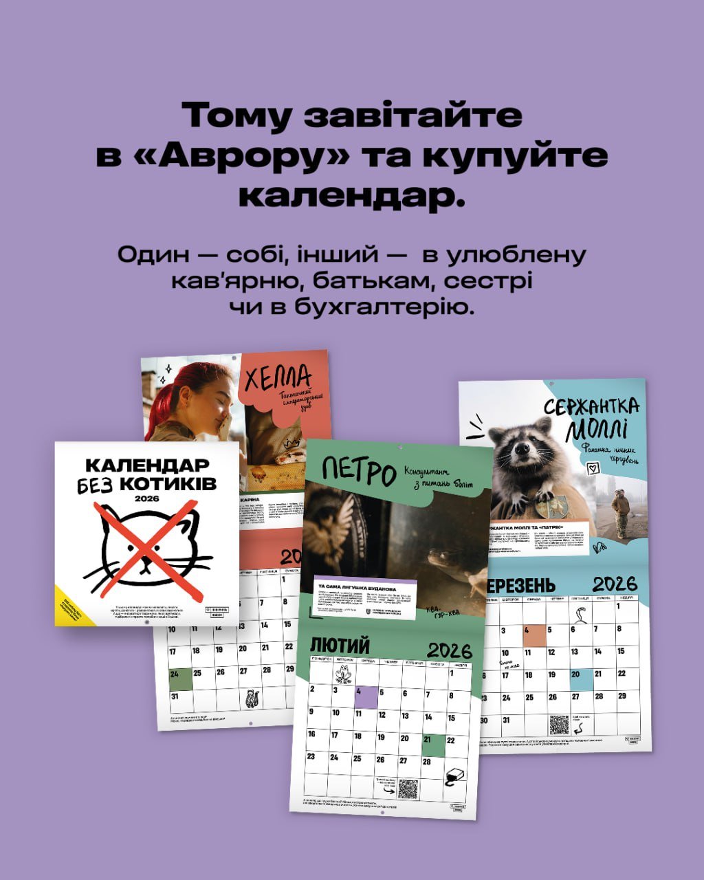 «Календар без котиків»: Аврора представила благодійний календар від фонду «Повернись живим»