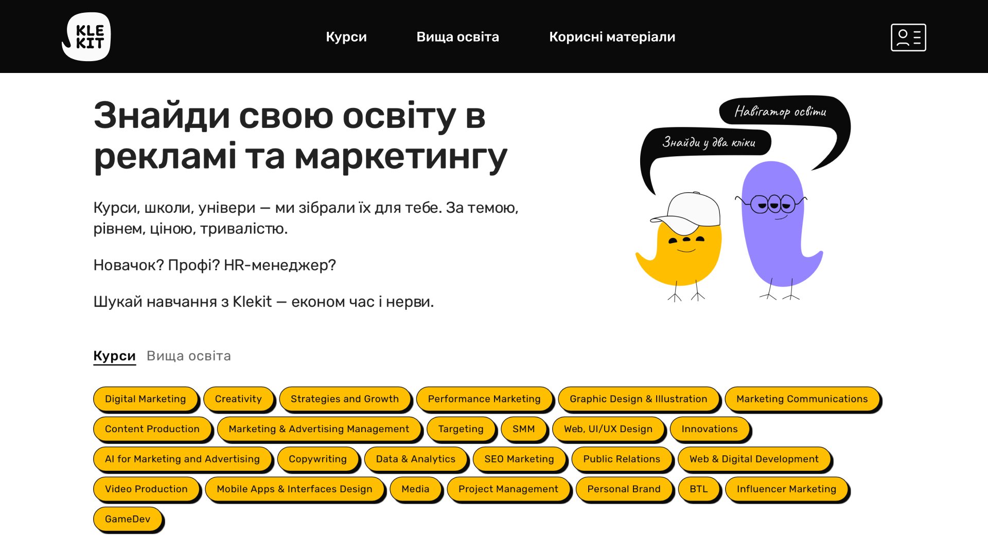 Klekit — перший в Україні пошукач освіти з маркетингу та реклами