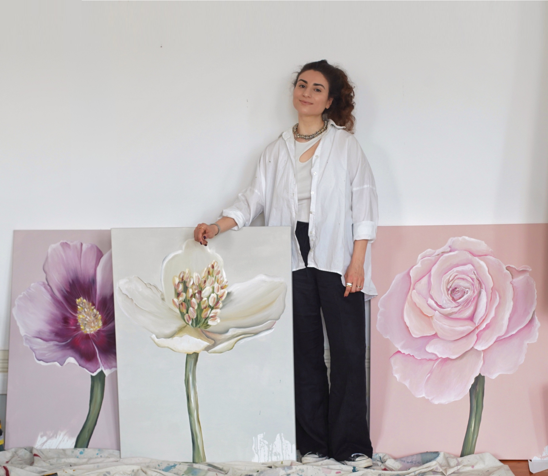 Відома своїми роботами у напрямку монументального мистецтва та гіперболічними ботанічними сюжетами, Ліліт Саркісян спеціально для “Молокія створила три полотна – «Мальва», «Жасмин» та «Троянда», які і лягли в основу дизайну нової лінійки квіткових йогуртів.